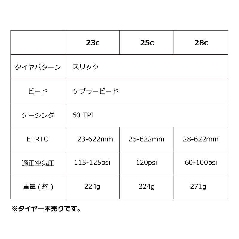 | タイヤ適正空気圧 | 23C:115-125psi , 25C:120psi, 28C:60-100psi |