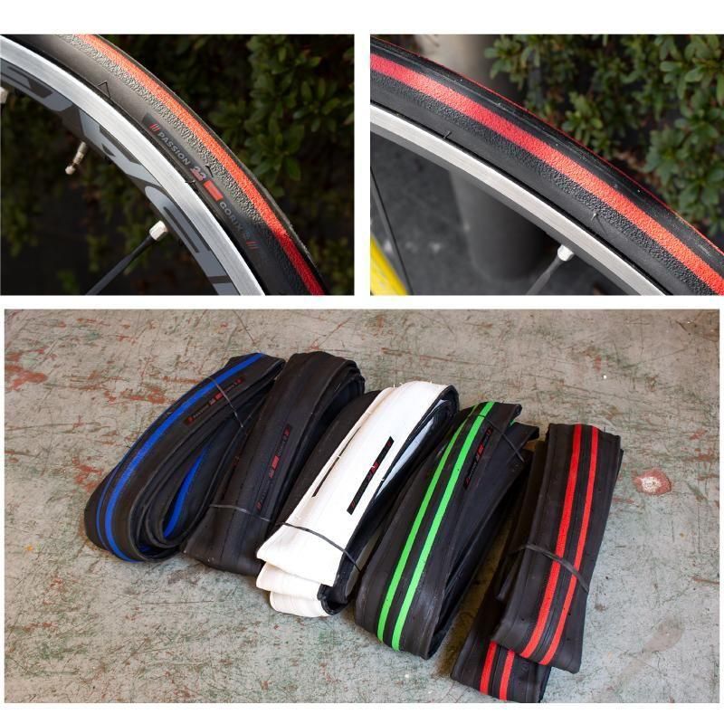 選べるサイズ(700x23C / 700x25C / 700x28C)と豊富なカラー(ブラック、ホワイト、ブルー、レッド、グリーン)で、