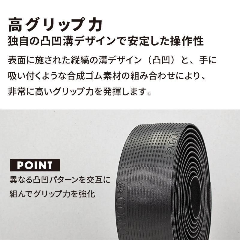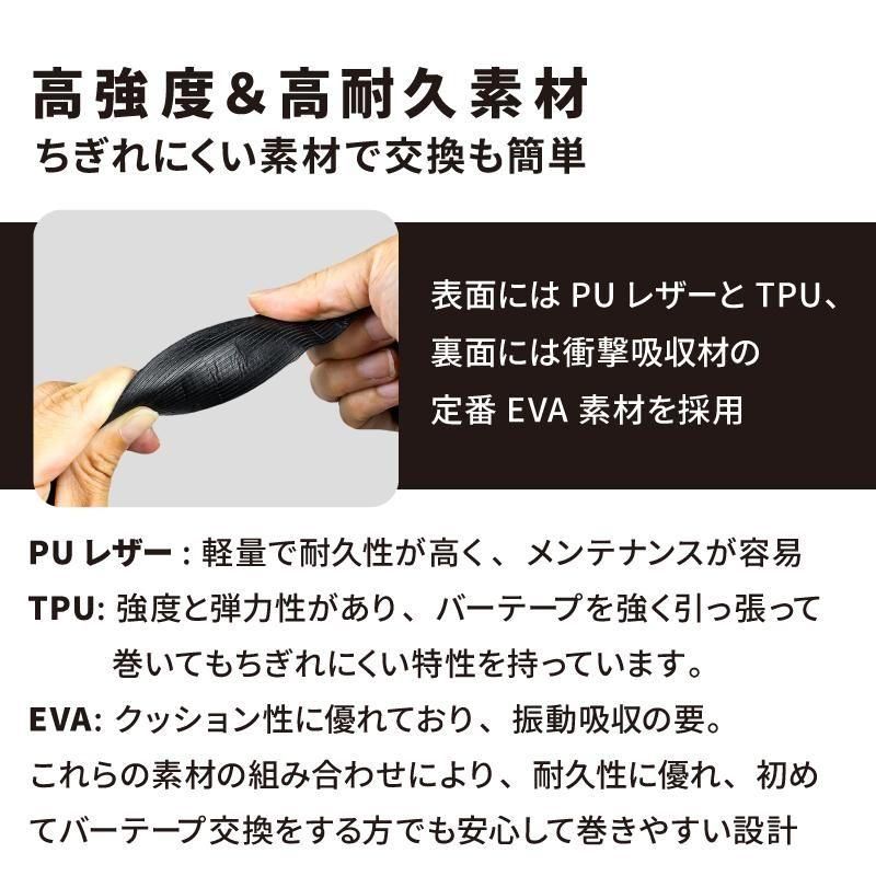 EVA: クッション性に優れており、振動吸収の要となります。 これらの素材の組み合わせにより、耐久性に優れ、初めてバーテープ交換をする方でも安心して巻きやすい設計です。