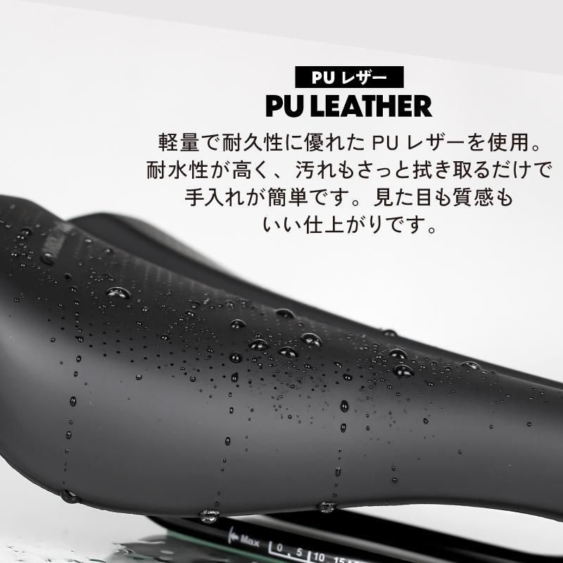 このサドルは標準的な長さ270mmで、前傾姿勢に適したカーブした座面が体にフィットし、長時間のライドでも快適にサポートします。