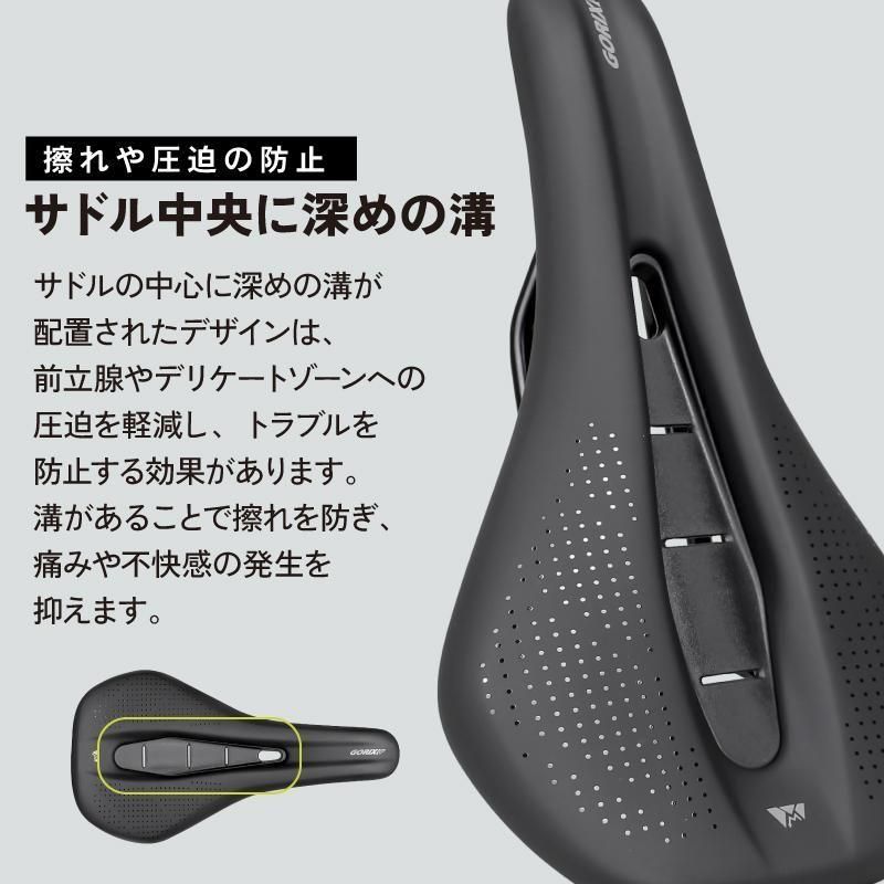 サドルの中心に深めの溝が配置されたデザインは、前立腺やデリケートゾーンへの圧迫を軽減し、トラブルを防止する効果があります。