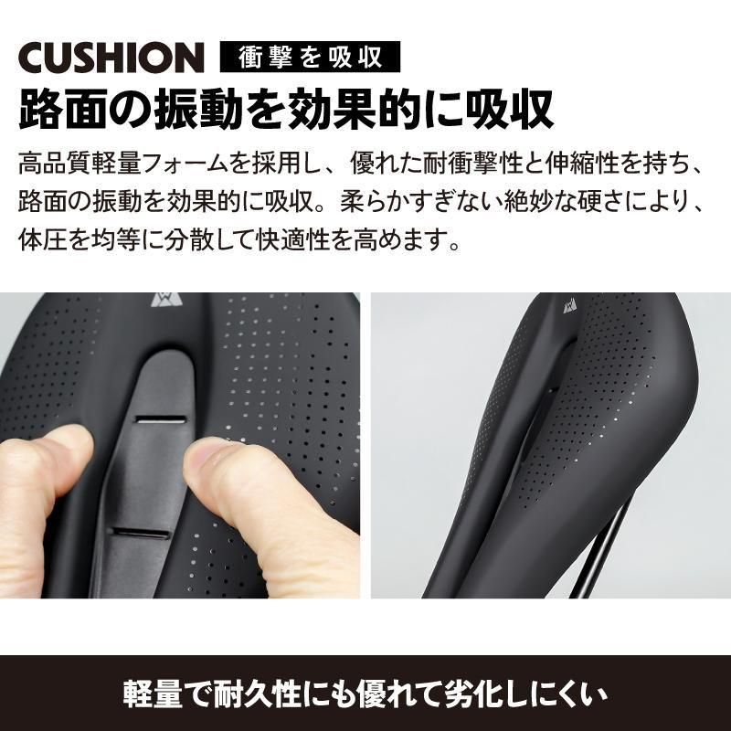 高品質軽量フォームを採用したサドルは、適度な厚みと軽量さを両立し、スポーツ走行や長距離ライドに最適です。