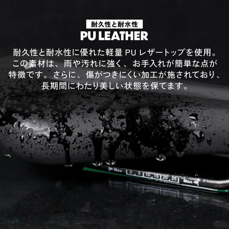 サドルの表面素材には、耐久性と耐水性に優れた軽量PUレザートップを使用。