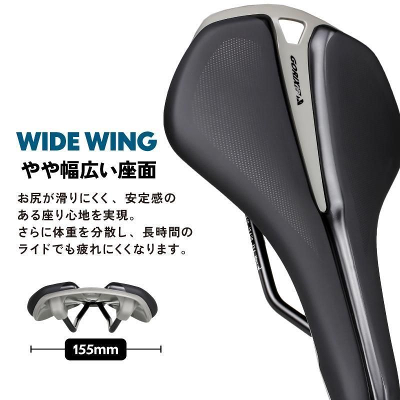 やや広めのウィングが腰を安定させ、長距離でも疲れにくい設計です。