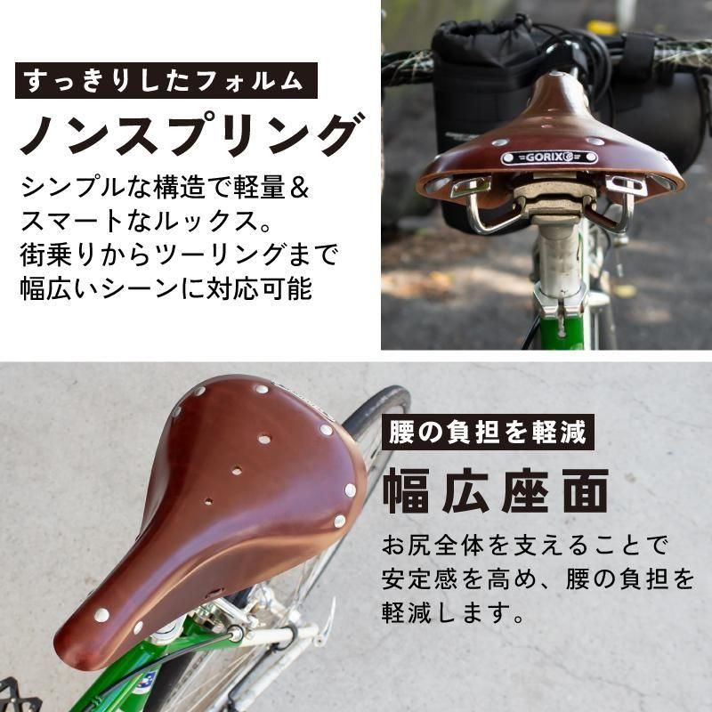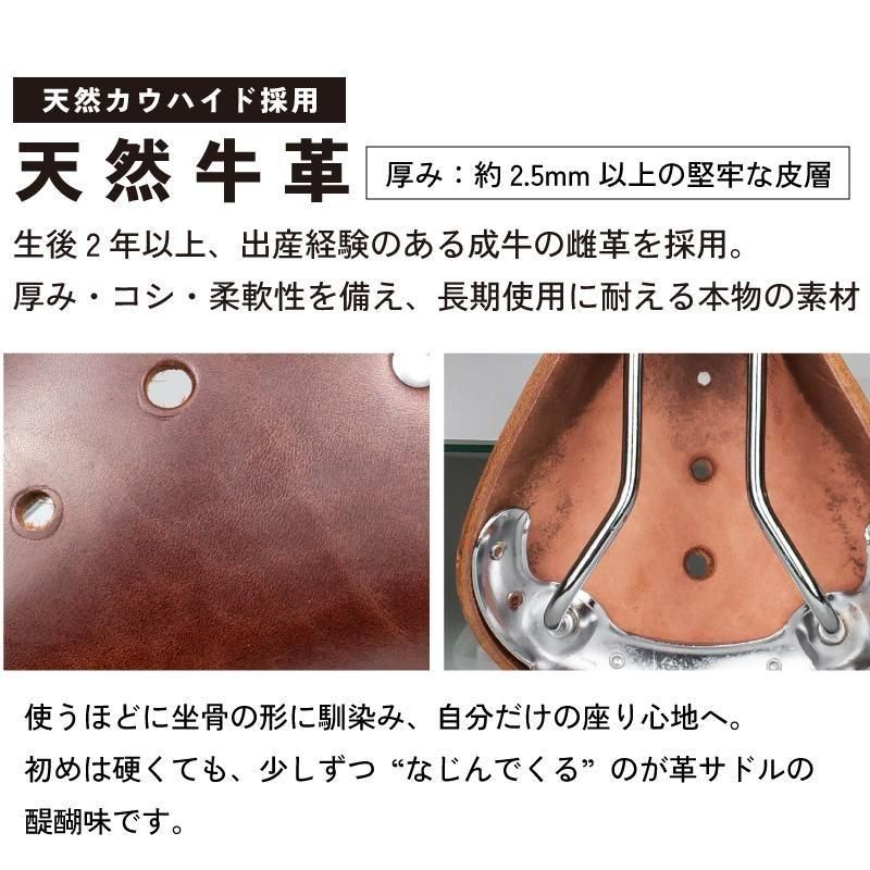 さらに、本革ならではの通気性の良さ・張りのある乗り心地・高級感ある風合いは、人工素材では決して真似できない大きな魅力。クラシックな自転車やレトロカスタムとの相性も抜群です。