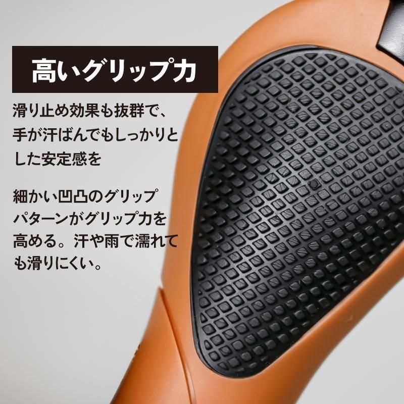 耐久性と耐摩耗性、耐滑り性、耐衝撃性に優れています。手に吸い付くようなグリップ感。