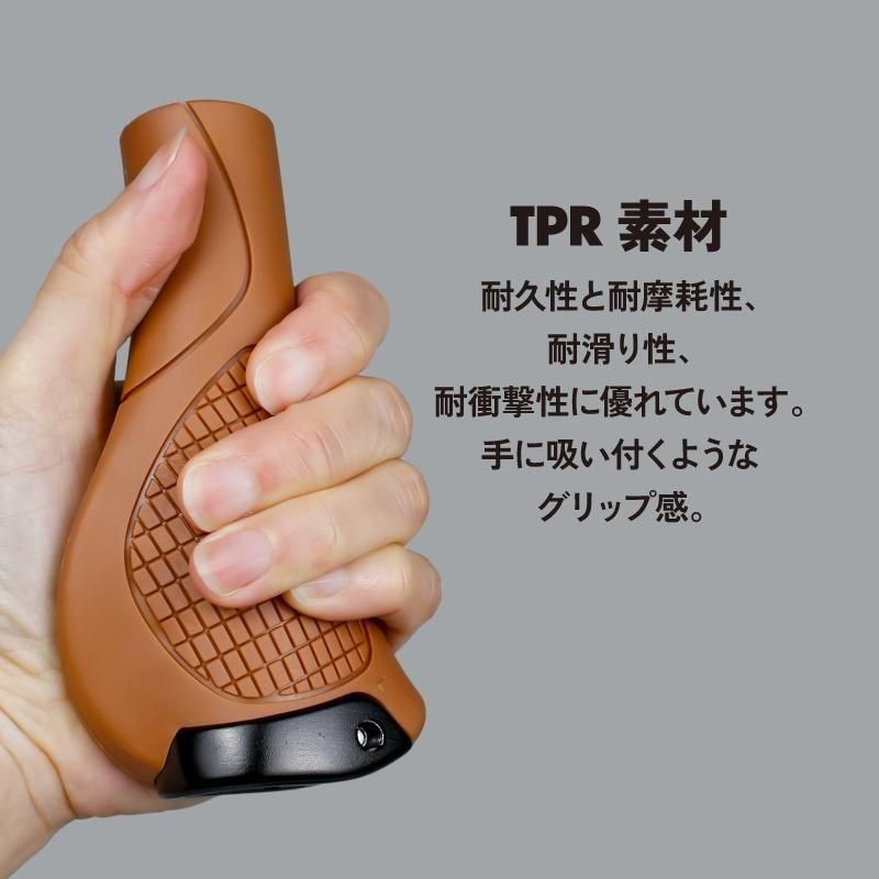 長時間のライディングに向いているエルゴ形状は、手首や掌の疲れの軽減と高いフィット感が期待できます。