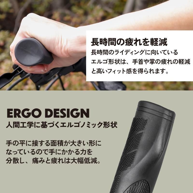 このグリップは標準的なストレートフラットハンドルに対応しており、クロスバイクやマウンテンバイク(MTB)に最適です。