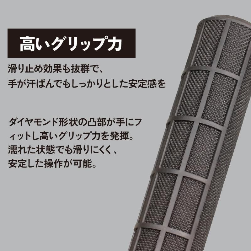 ダイヤモンド形状の凸部分が手にしっかりと引っかかり、摩擦を生むことで優れたグリップ力を発揮します。