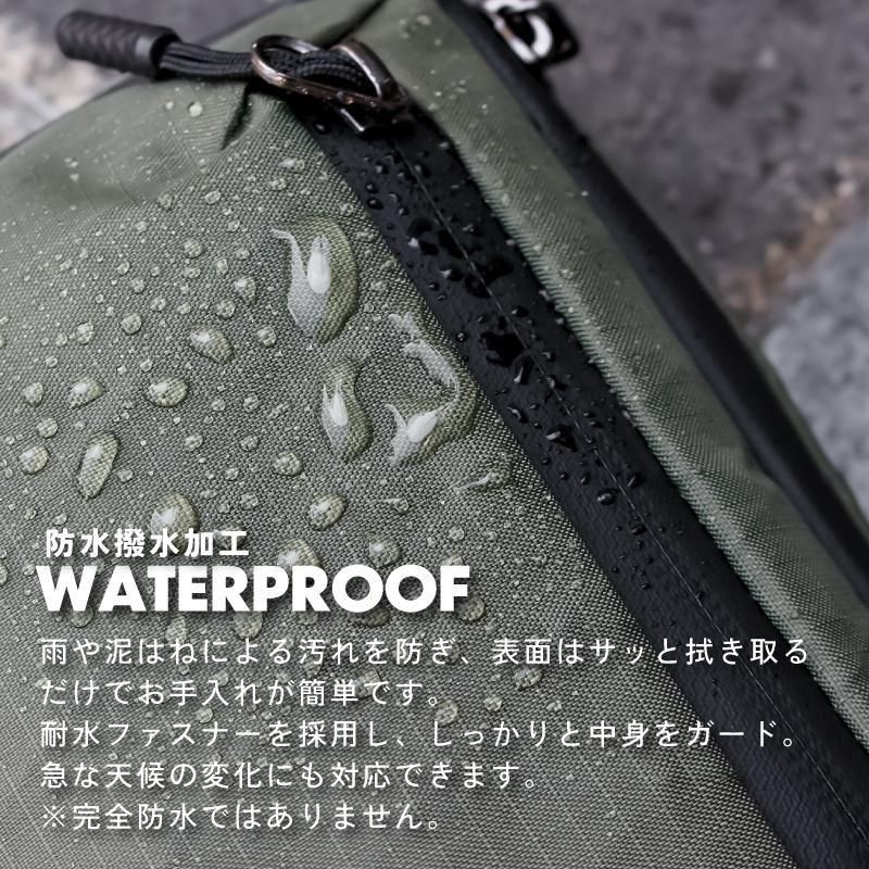 さらに、防水撥水性のある表地と耐水ファスナーを採用し、小雨程度ならしっかりと中身をガード。