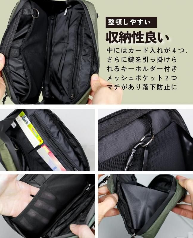必要なものをスムーズに取り出せるため、自転車移動中も街歩きのときも快適に使えるバッグです。