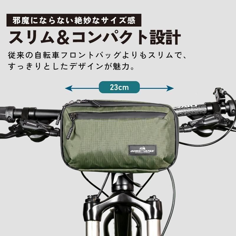 従来の自転車フロントバッグよりもスリムで、すっきりとしたデザインが魅力。