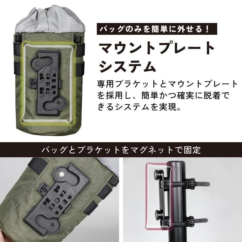 また、専用ブラケットとマウントプレートを採用したマウントプレートシステムにより、バッグのみを簡単に脱着可能。