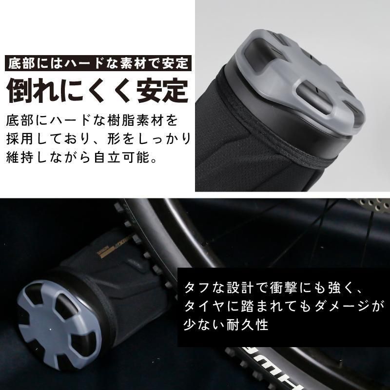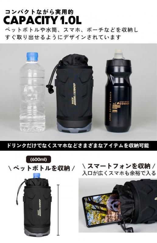 500mlペットボトルや500ml〜600mlのサイクルボトルが収納できるほか、スマホや財布、鍵などの小物も収納可能です。
