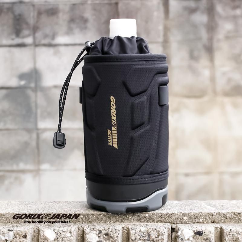 調整可能な絞り紐付きで、走行中の段差などの衝撃でも中身が飛び出さず安心。