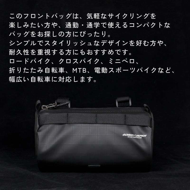 ゴリックスの[MT.NX MOUNTAIN]シリーズの中でこのフロントバッグは、コンパクトでシンプルさを追求したサイクリングバッグです。