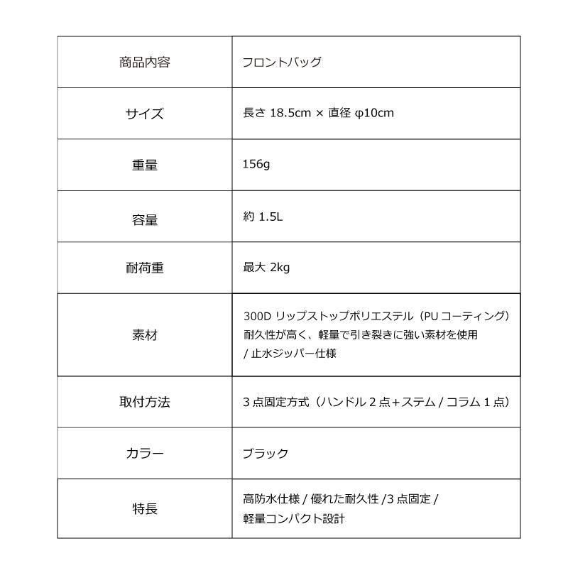 このフロントバッグは、気軽なサイクリングを楽しみたい方や、通勤・通学で使えるコンパクトなバッグをお探しの方にぴったり。