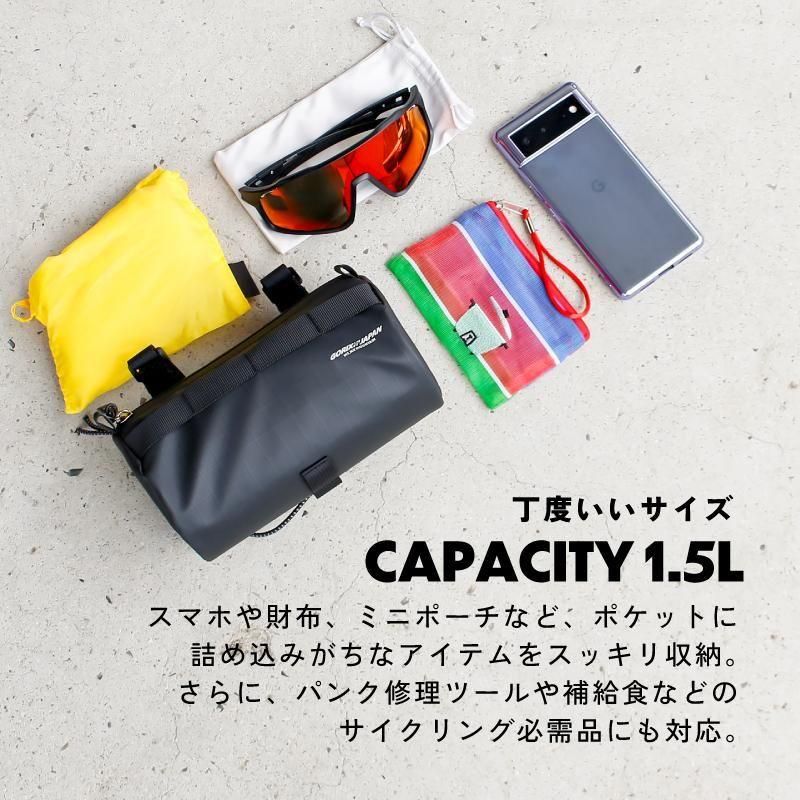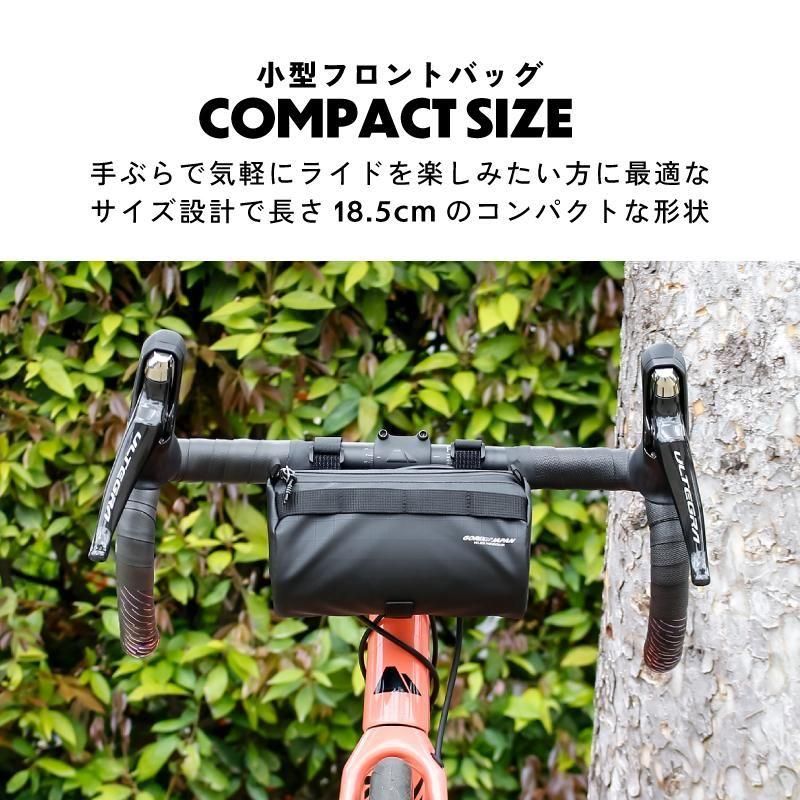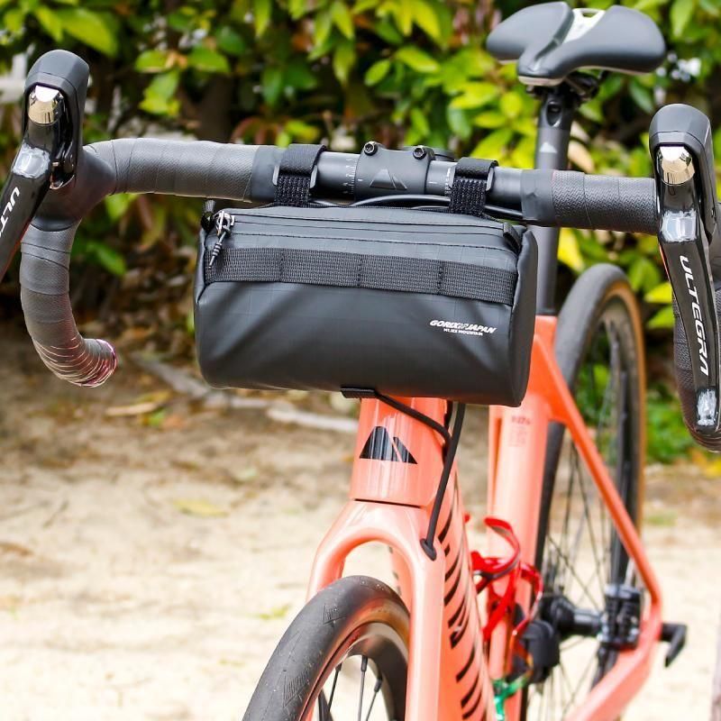 ゴリックスの小型フロントバッグは、手ぶらで気軽にライドを楽しみたい方に最適なサイズ設計。