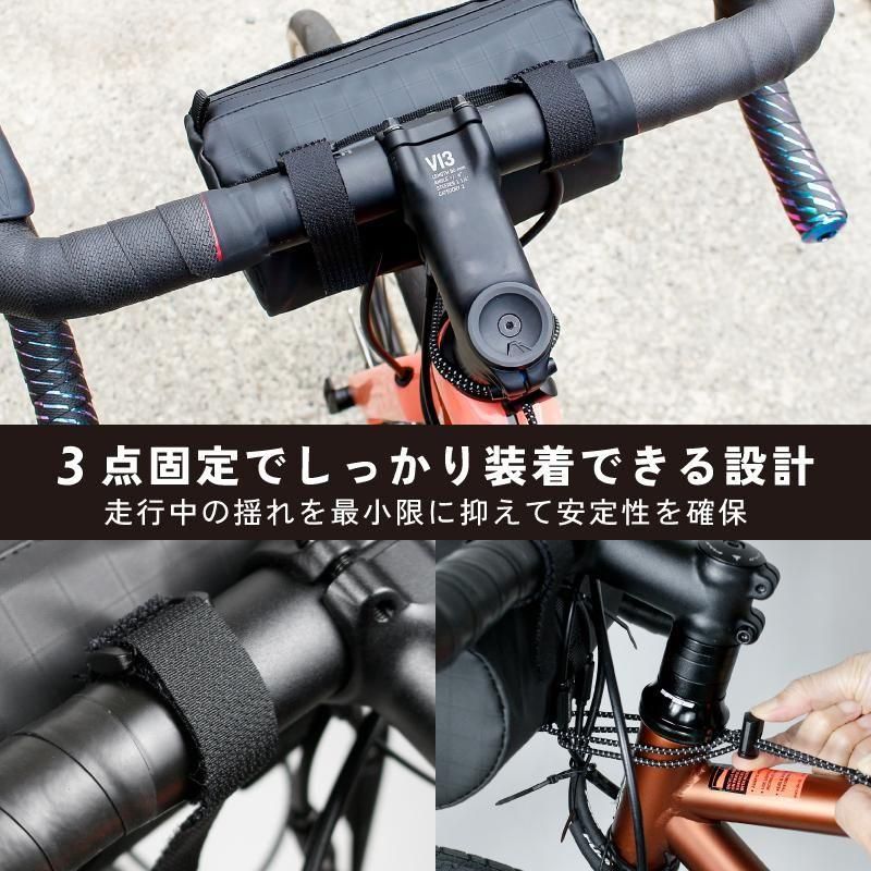 ハンドル2点+調整可能なゴムストラップでステム(コラム)にも固定し、走行中の揺れを最小限に抑えて安定性を確保。