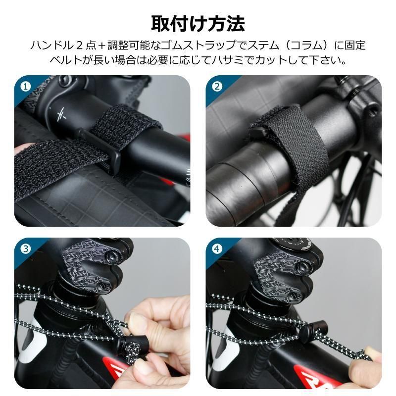 ハンドル2点+調整可能なゴムストラップでステムにも固定できる3点固定設計。