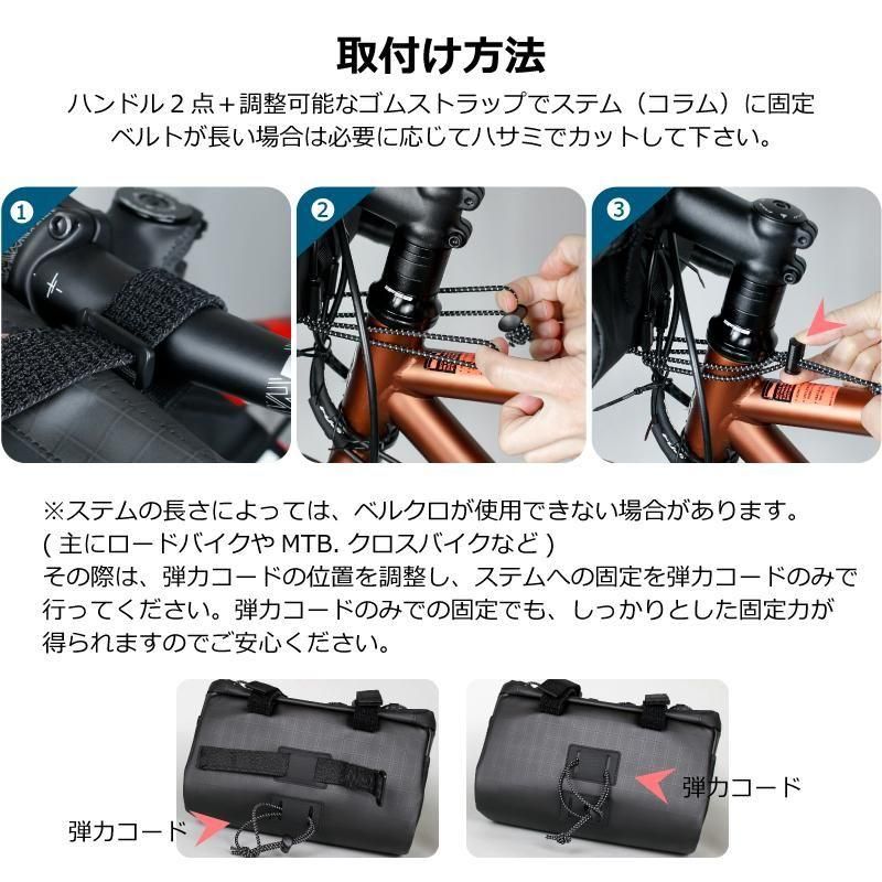 取付方法 | 4点固定方式(ハンドル2点+ステム1点、ステム補強固定: 1点(弾力コード) |