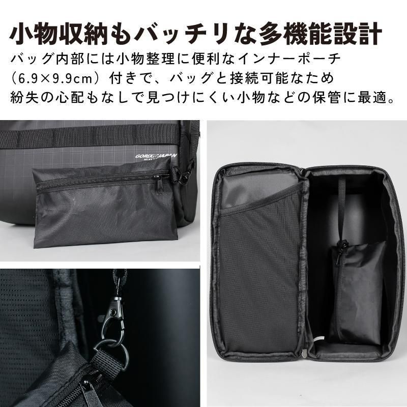 バッグ内部には小物整理に便利なインナーポーチ(6.9×9.9cm)付きで、バッグと接続可能なため紛失の心配もなし。