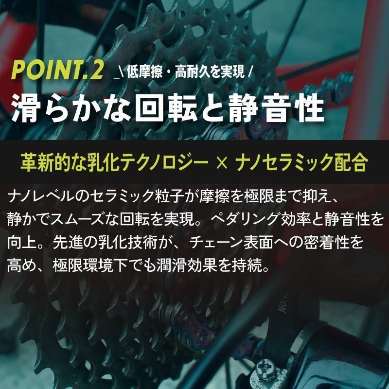 最新技術の半固体ワックスとナノ粒子配合によって、チェーンの摩擦を極限まで抑え、驚くほど滑らかな回転と静音性を実現します。
