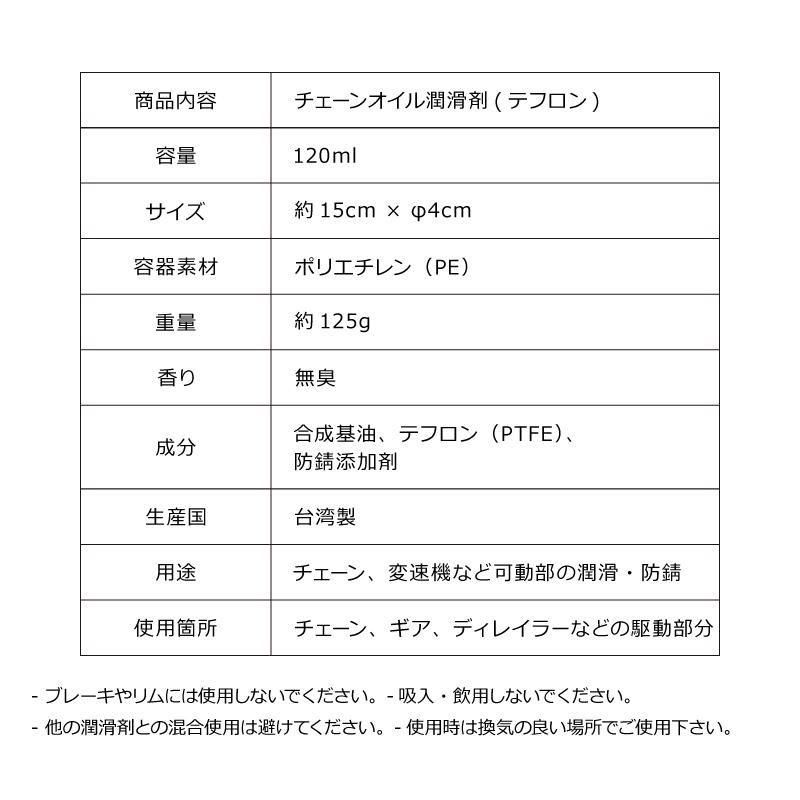 商品内容 | チェーンオイル潤滑剤(テフロン) |