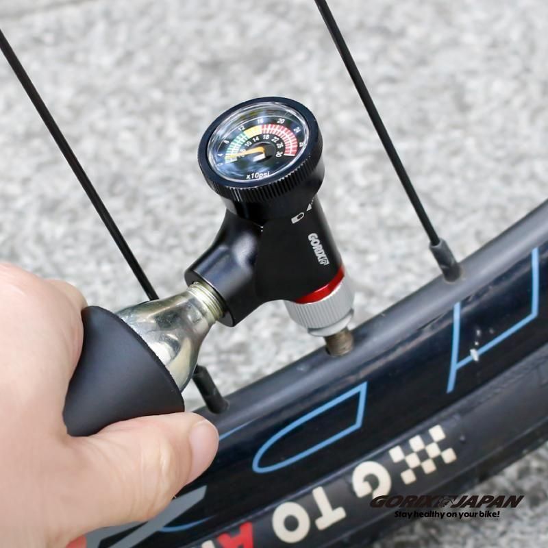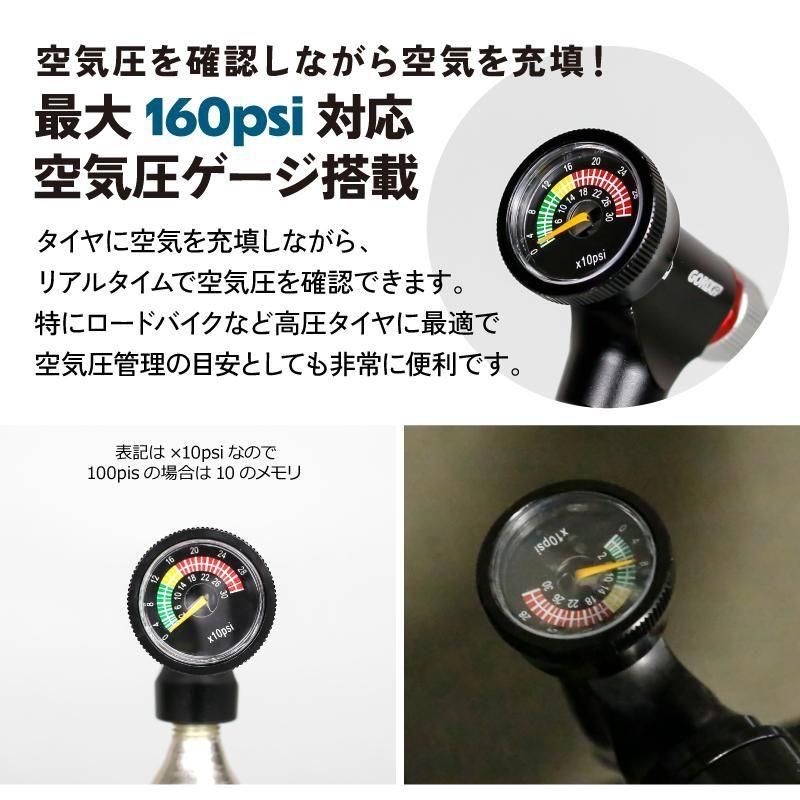 本CO2インフレーターには、最大160psiまで対応可能な空気圧ゲージを搭載。