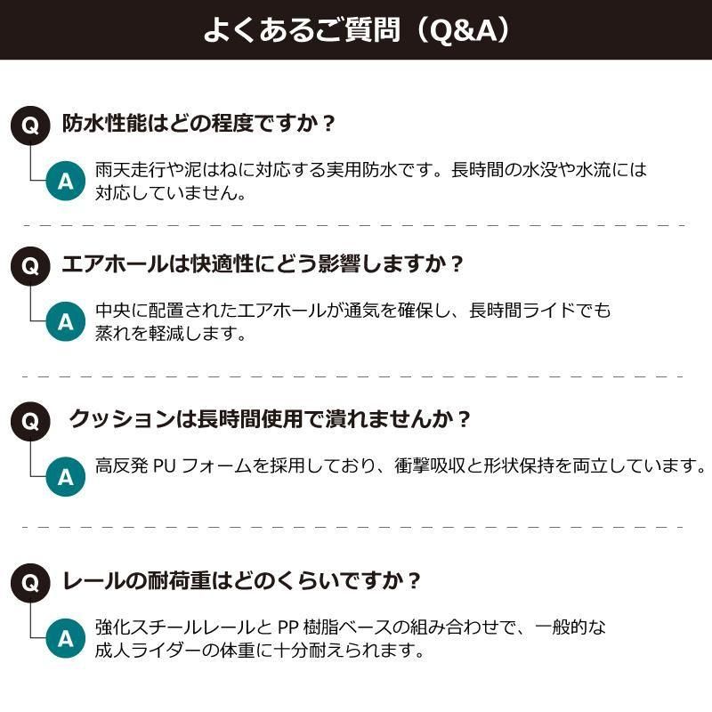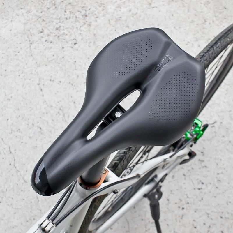 中央に配置されたエアホールが、長時間のライドでも蒸れを軽減し、デリケートな部分への圧迫も最小化します。