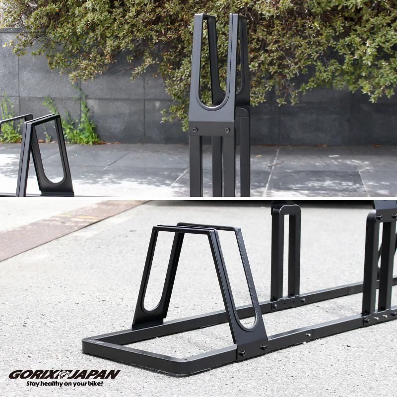 前輪を差し込むだけのシンプルな駐輪方法で、誰でも簡単に使えます。自転車をしっかり固定し、風や接触による転倒リスクを軽減。