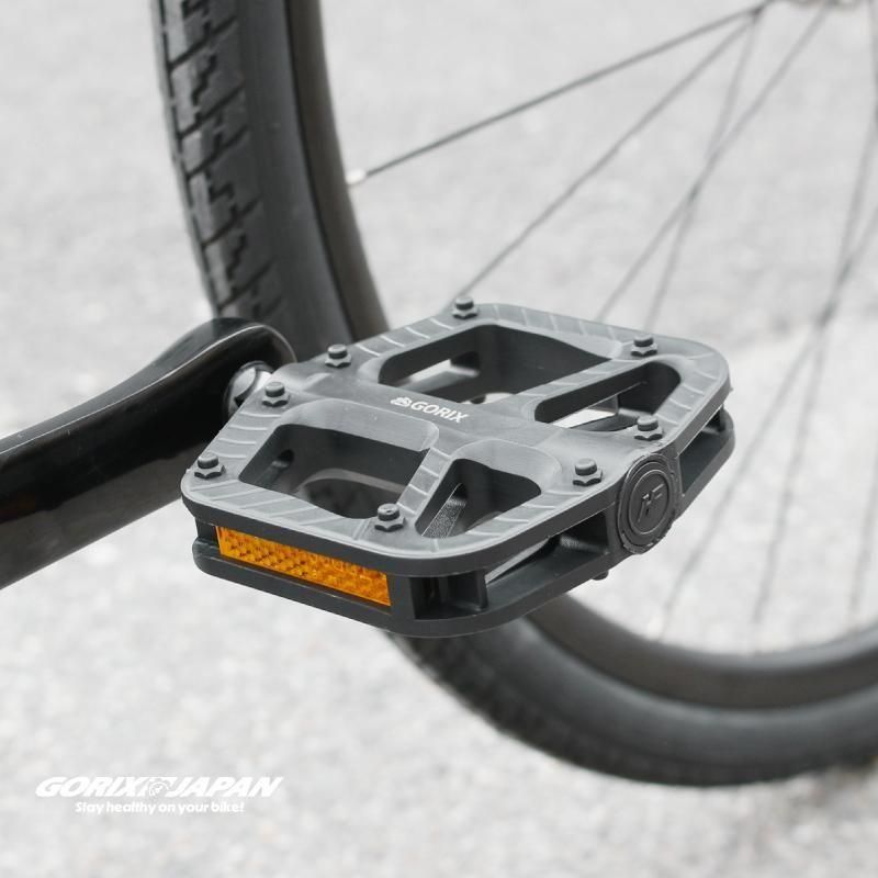 ペダル 自転車 フラットペダル 反射板 幅広 ワイド 軽量 リフレクター 樹脂 (GX-MP856)