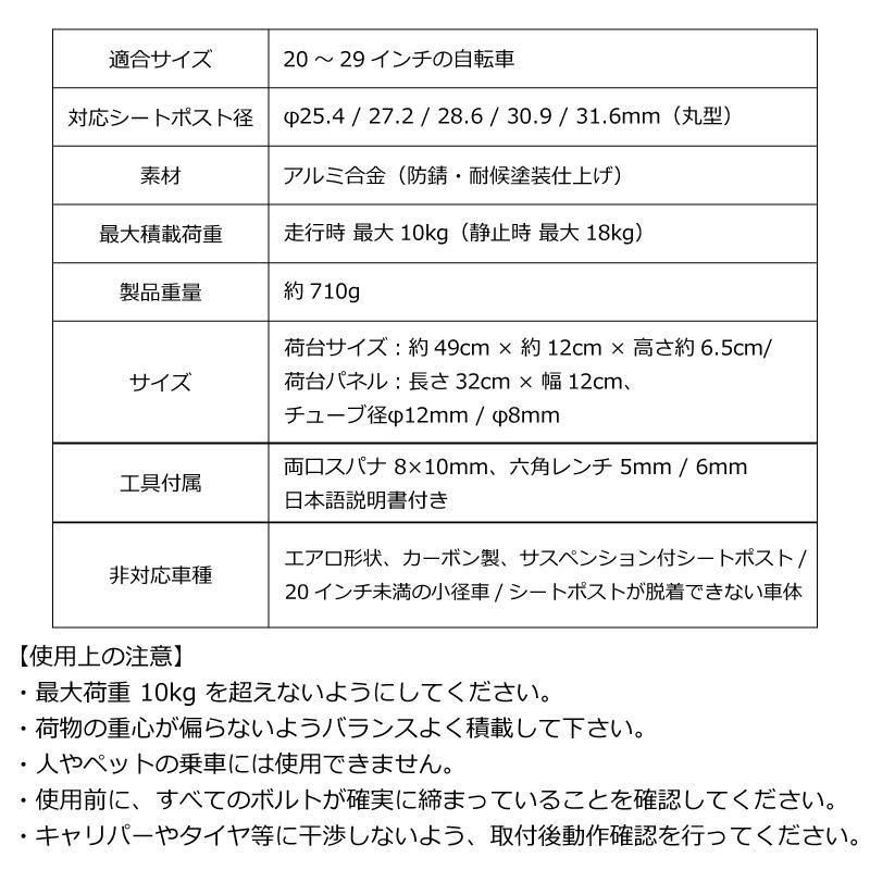 自転車 リアキャリア 荷台 シートポスト固定式 ダボ穴不要/ネジ固定 (GRS493)